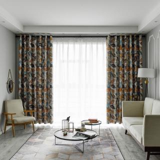 Elegant Modern Leaves Pattern Blackout Window Curtains Thick